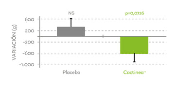 - A statistically significant loss of body weight was observed in the CactineaTM group , unlike what occurred in the placebo group.