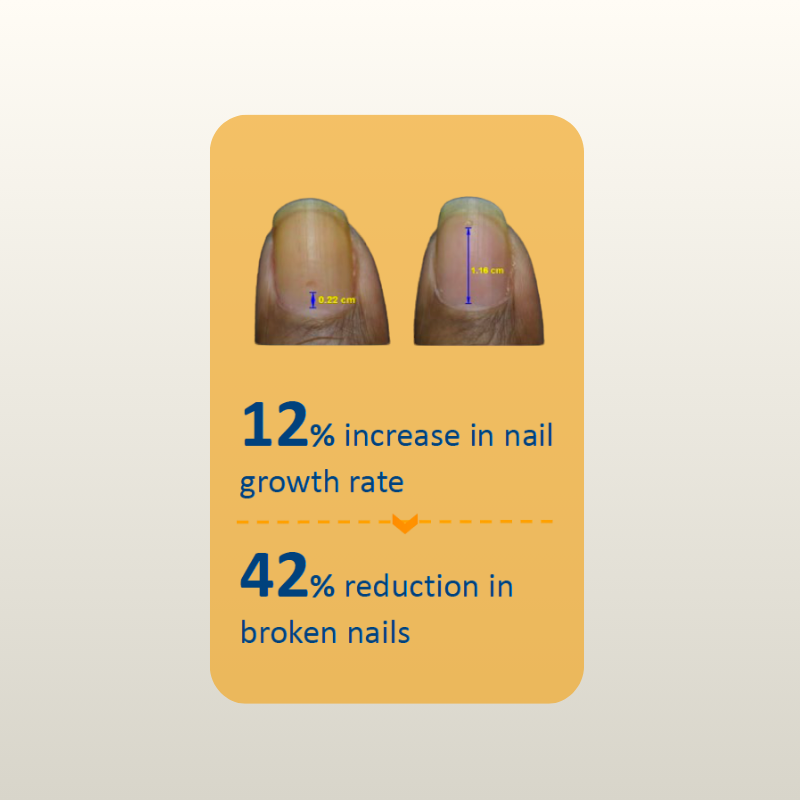 It reduces cracked and/or chipped nails after 2 months of treatment, achieving a 42% reduction after 6 months.