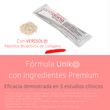 It includes 2.5 g, the dose that has proven effective through 5 clinical studies. These Collagen Peptides together with Hyaluronic Acid, a polysaccharide present in the extracellular matrix that provides a high level of hydration and the rest of the antioxidants, pomegranate, açai, vitamin C and Biotin make Unik Antiaging the essential nutricosmetic for your beauty ritual. from day to day