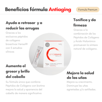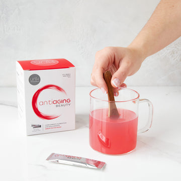 Unik Antiaging includes Bioactive Collagen Peptides (Verisol®) , Hyaluronic Acid , Pomegranate , Açai Extract , Biotin and Vitamin C and has a delicious natural red fruit flavor . You'll love it! and it will be very easy for you to incorporate it into your daily beauty routine.